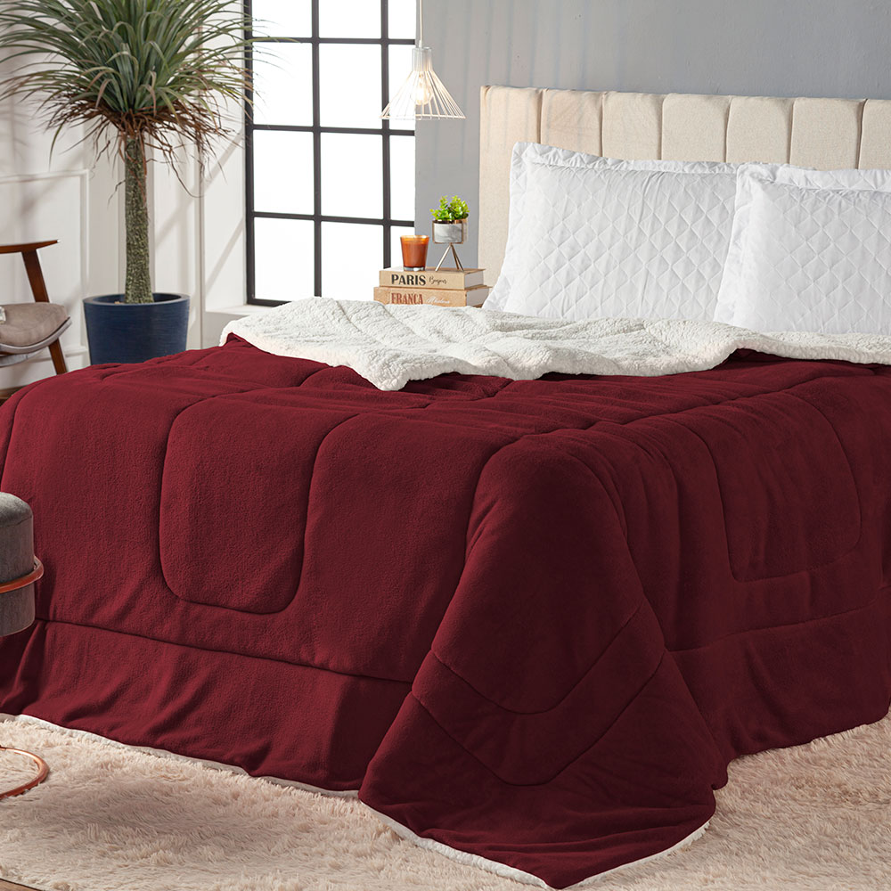 Cobertor Queen Dupla Face Manta Fleece e Sherpa de Carneiro Maya Vermelho